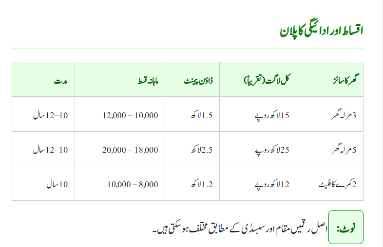 Installments start from Rs. 8,000 and go up to Rs. 20,000 depending on house size.