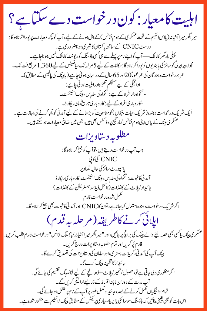 Quick Details for Askari Bank Mera Ghar Mera Ashiana Scheme