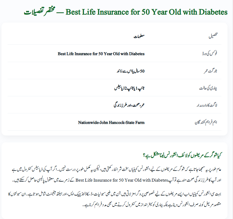 | Focus Keyword | Best Life Insurance for 50 Year Old with Diabetes |