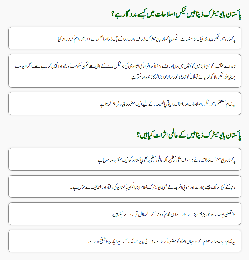 How is the Pakistan Biometric Database Helping with Tax Reforms?