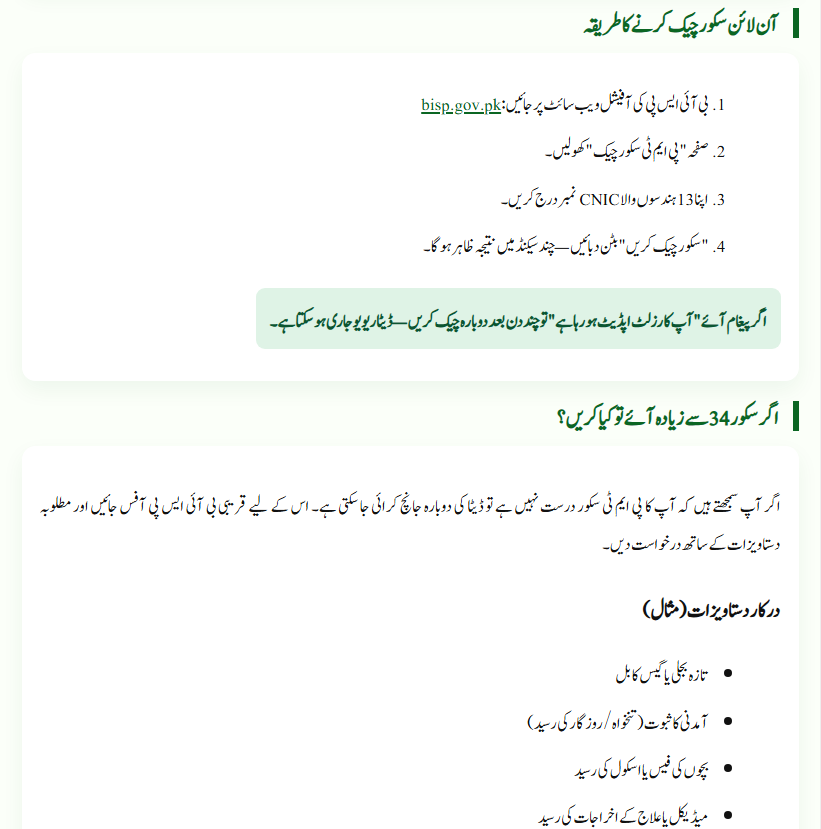 If your score is below 34 but payments have stopped, immediately visit your nearest BISP office and verify your details again.