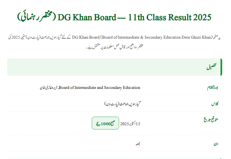 Q1: When will the DG Khan 11th Class Result 2025 be announced?
