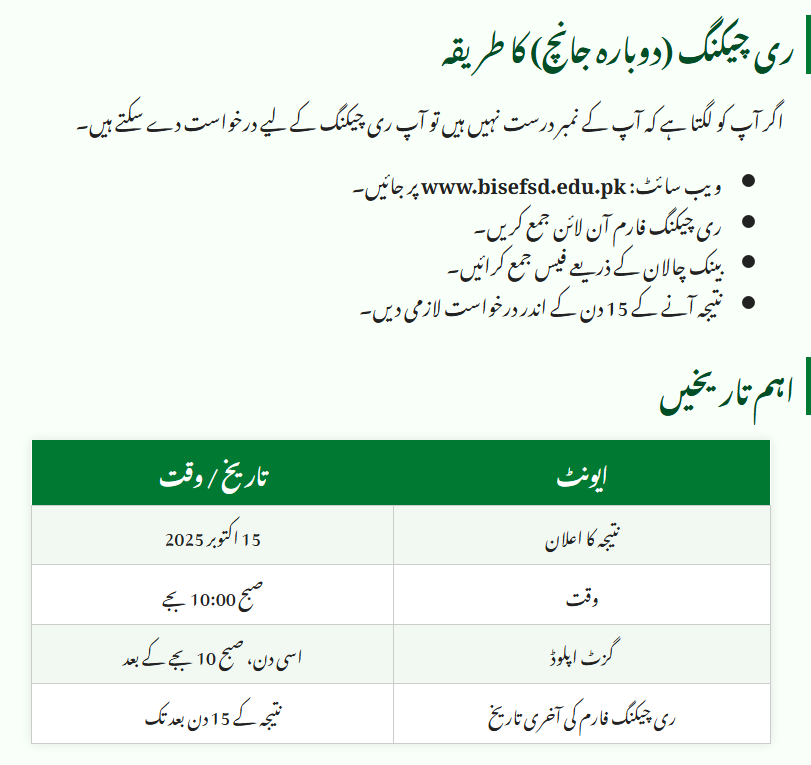 Important Dates – Faisalabad Board 1st Year Result 2025