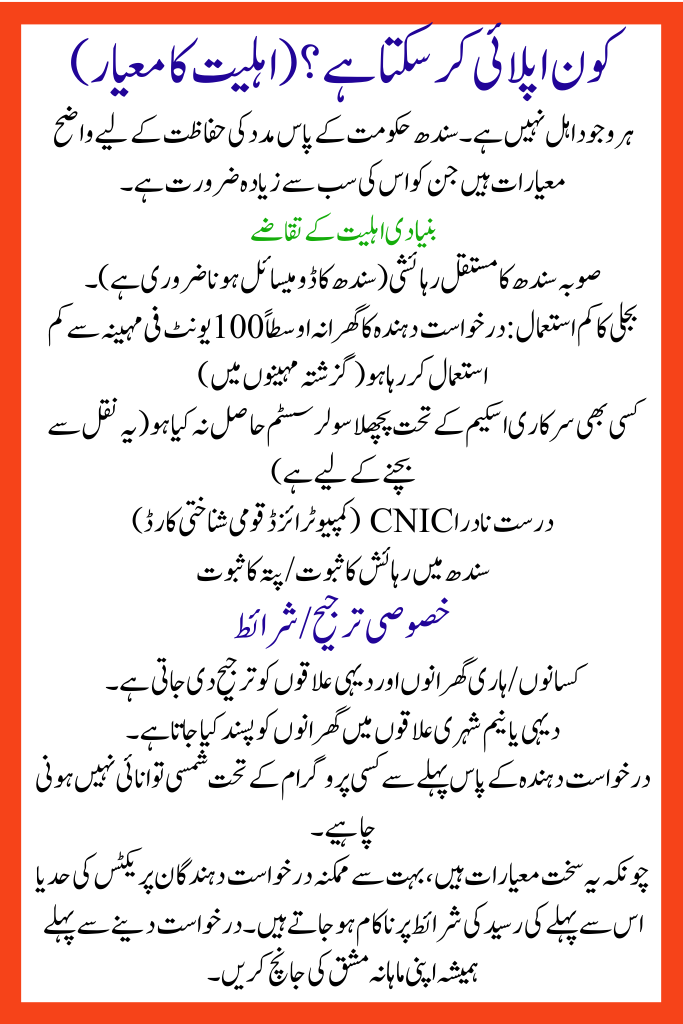 Tip: Visit your nearest Sindh Energy Department or district office and ask for details. Spread word among neighbors.