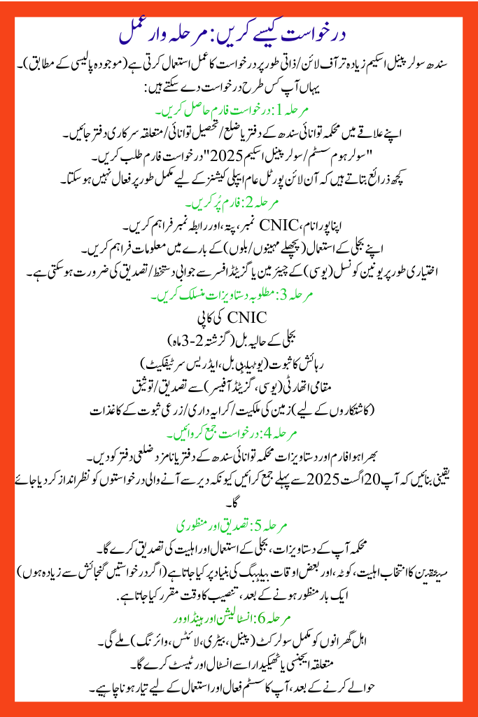 The Sindh Solar Panel Scheme uses a mostly offline / in-person application process (as of current policy). Here’s how you can apply: