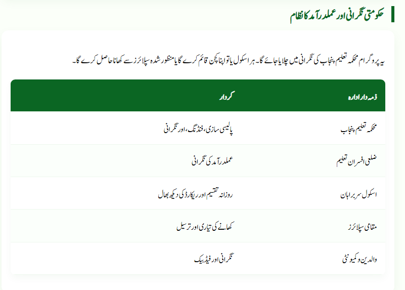 The Punjab Education Department and district committees monitor food quality daily through digital reporting and community feedback systems.