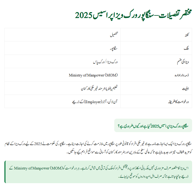 If you’re planning to work in Singapore in 2025, understanding the Singapore Work Visa Process 2025 is very important. This detailed guide will explain how to apply, who is eligible, what documents are required, and the benefits of getting a Singapore work visa.