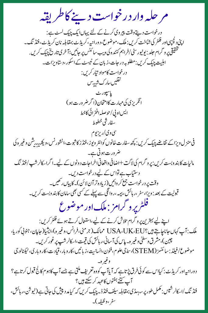 • Country: Where do you want to go? USA, UK, EU countries (Germany, France, etc.), Asia (Japan, South Korea, China), Middle East, etc. Consider pass ease, cost of living, scholarships.